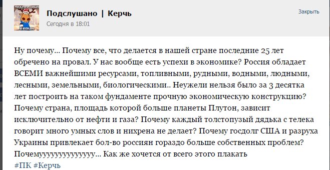 Не могу не порадоваться за русский Крым. Там ведь так хотели, чтобы все было, как в СССР. А главным атрибутом СССР была очередь...